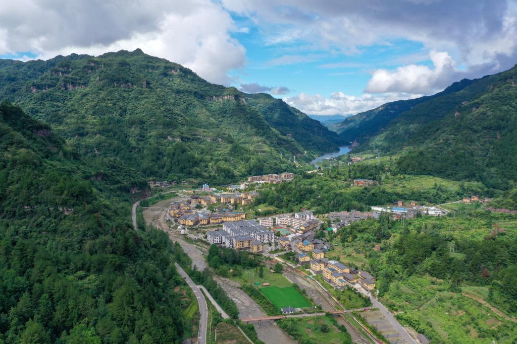 这是8月28日拍摄的重庆市石柱土家族自治县中益乡景色(无人机照片)。新华社记者 唐奕 摄
